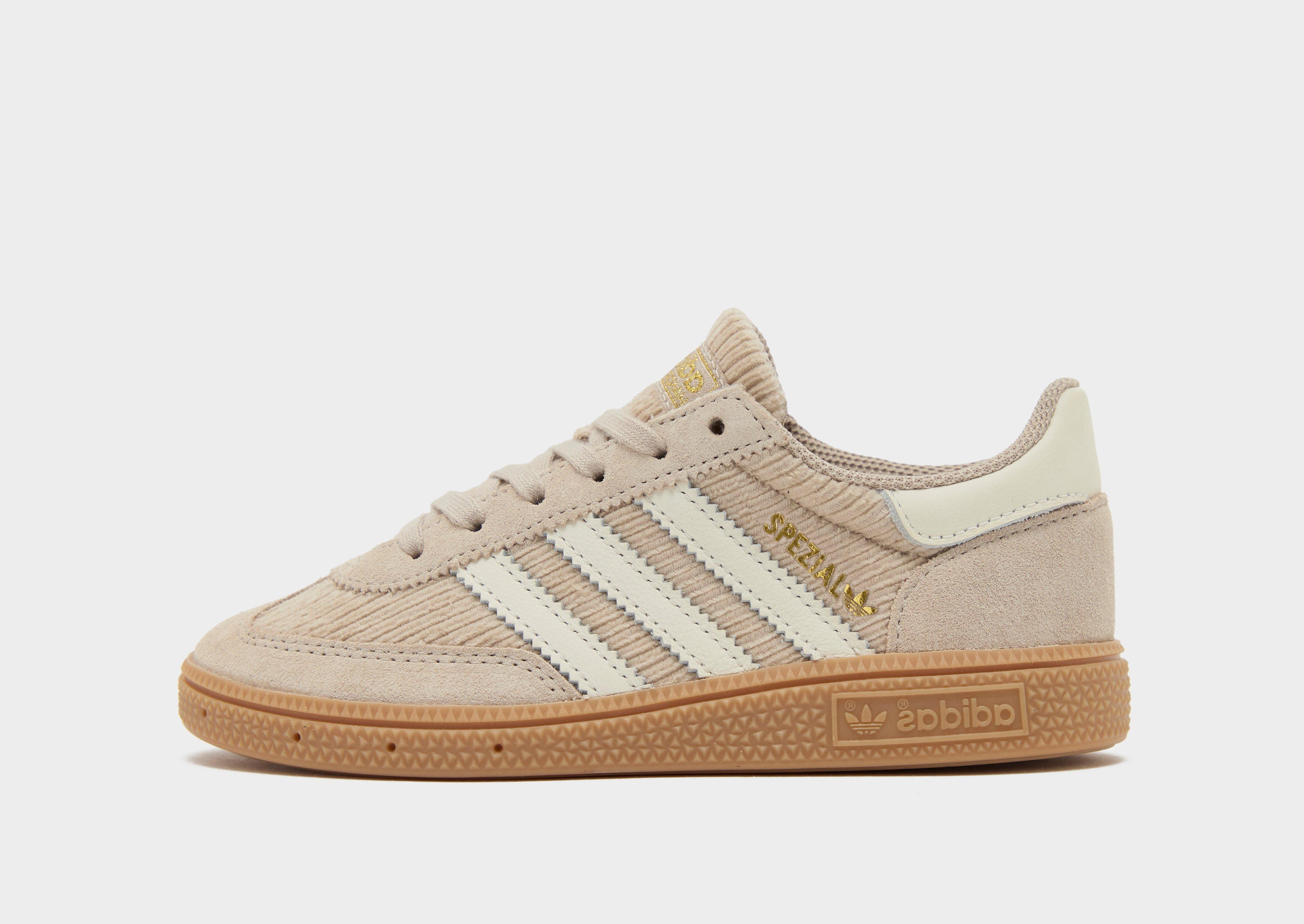 Upgrade die Rotation deiner Kids mit den adidas Originals Handball Spezial Sneakern für Kleinkinder. Diese JD-exklusiven Schuhe sind in der Farbe Wonder Beige gehalten. Sie besitzen ein Obermaterial aus glattem Wildleder und Textilgewebe. Außerdem verfügen sie über einen gepolsterten Kragen für sicheren Halt, während die Gummi-Außensohle maximale Traktion bietet. Für den letzten Feinschliff sorgt das klassische Logo. HQ5009