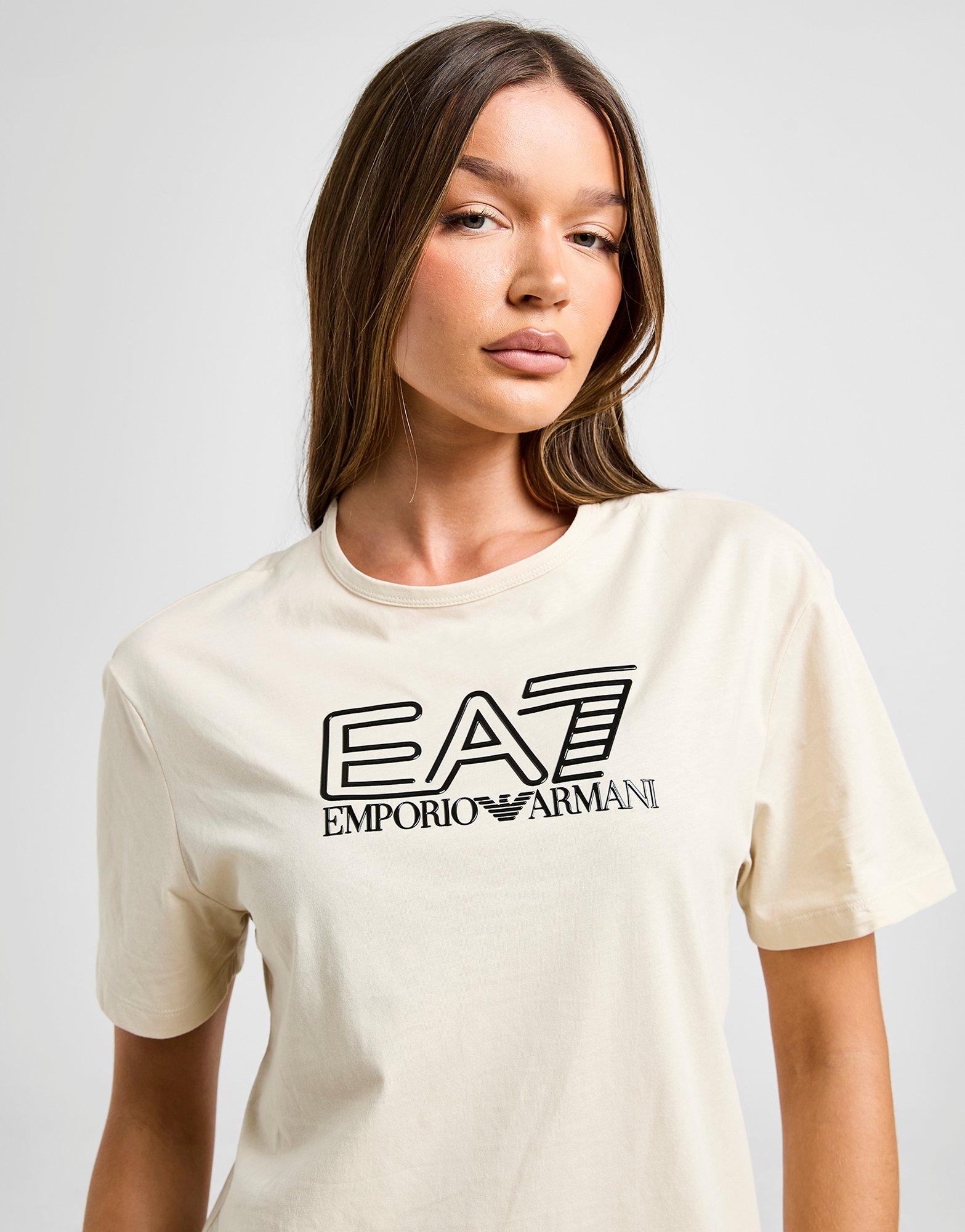Bring Premium-Vibes in deine Garderobe mit dem EA7 Emporio Armani Shine Logo Boyfriend T-Shirt für Damen. Dieses T-Shirt ist in der Farbe Cream gehalten und mit schwarzen Akzenten versehen. Es besteht aus weichem Baumwollstoff und sorgt für absoluten Komfort im Alltag. Außerdem verfügt es über einen Rundhalsausschnitt und kurze Ärmel für einen zeitlosen Look, während das ikonische Logo von EA7 Emporio Armani auf Brust und Nacken platziert ist. Waschmaschinengeeignet. Unser Model ist 1,78 m groß und trägt Größe S.