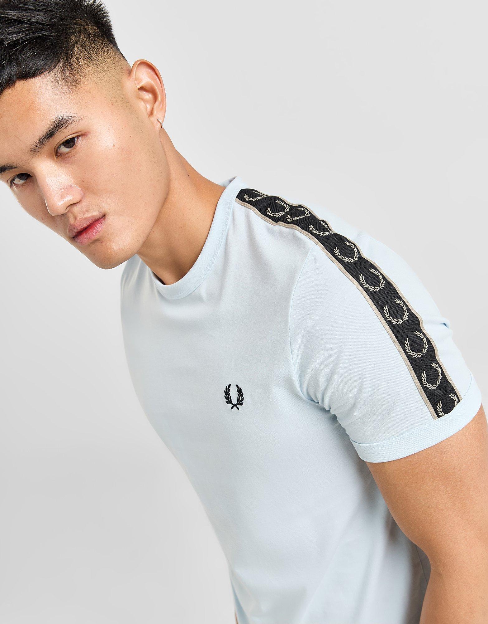 Sichere dir hochwertige Basics mit dem Fred Perry Tape Ringer T-Shirt für Herren. Dieses Regular-Fit Oberteil in der Farbe Sky Blue besteht aus weicher, leichter Baumwolle und bietet erstklassigen Tragekomfort. Es verfügt über einen klassischen Rundhalsausschnitt und kurze Ärmel mit gerippten Ringerdetails an Kragen und Bündchen. Abgerundet wird das Design durch sportliche Tapes an den Ärmeln mit wiederholtem Logo von Fred Perry und das ikonische Lorbeerkranz-Logo auf der Brust. Waschmaschinengeeignet. Unser Model ist 1,83 m groß, hat einen Brustumfang von 97 cm und trägt Größe M.