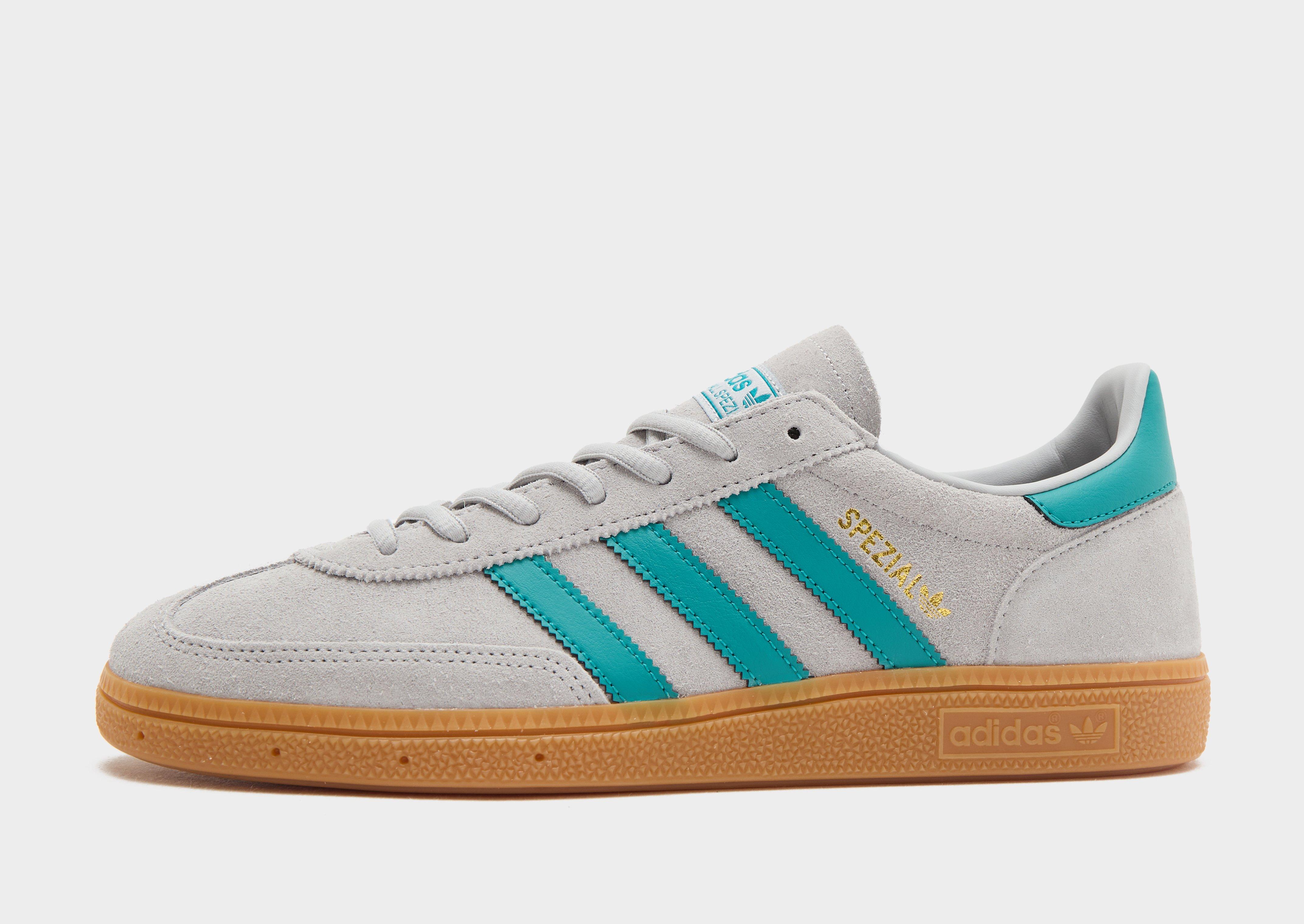 Mit den adidas Originals Handball Spezial Sneakern für Herren bringst du einen Klassiker in deine Rotation. Diese Schuhe besitzen ein Obermaterial aus geschmeidigem Wildleder mit dem ikonischen T-Toe für die Retro-Vibes. Außerdem verfügen sie über eine leichte Dämpfung unter den Füßen. Und eine griffige Gummi-Außensohle. Nice. Abgerundet wird das Design durch das Trefoil-Logo auf der Zunge, während der Spezial-Schriftzug und die 3-Streifen an den Seiten zu sehen sind. JR3844