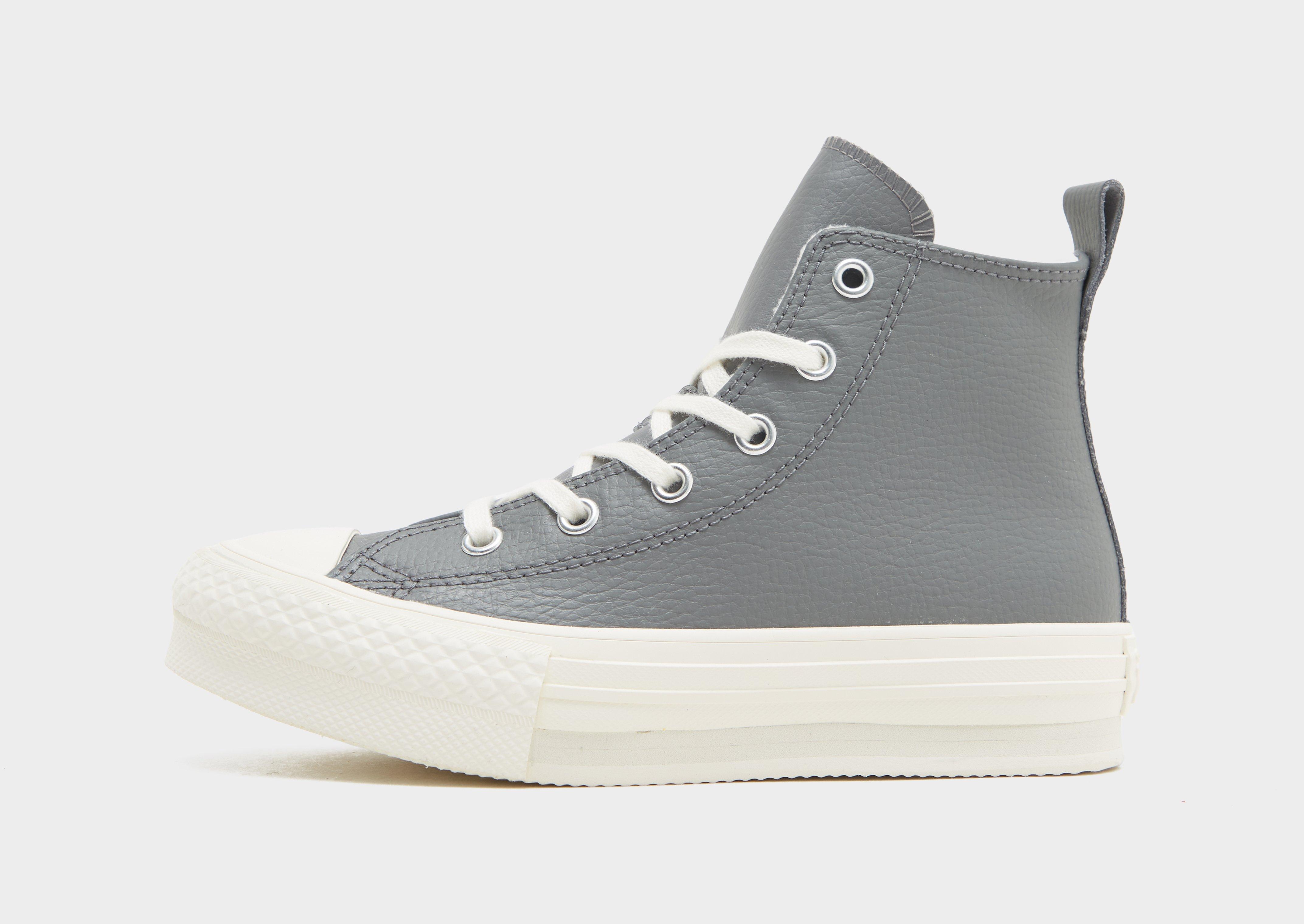 Mit den Converse Chuck Taylor All Star High Lift Sneakern für Kleinkinder sind deine Kids immer in Topform. Diese Schuhe sind in den Farben Sharkskin und Egret gehalten und besitzen ein beschichtetes Obermaterial aus Leder mit einer synthetischen Zehenkappe, während das kuschelige Fleecefutter für absoluten Komfort sorgt. Zusätzlich verfügen die Kicks über eine EVA-Plateau-Zwischensohle für die Dämpfung und eine griffige Gummi-Außensohle für die Traktion. Der Chuck Taylor Knöchelaufnäher in der Farbe Warm Quarry verleiht dem Design einen runden Abschluss.