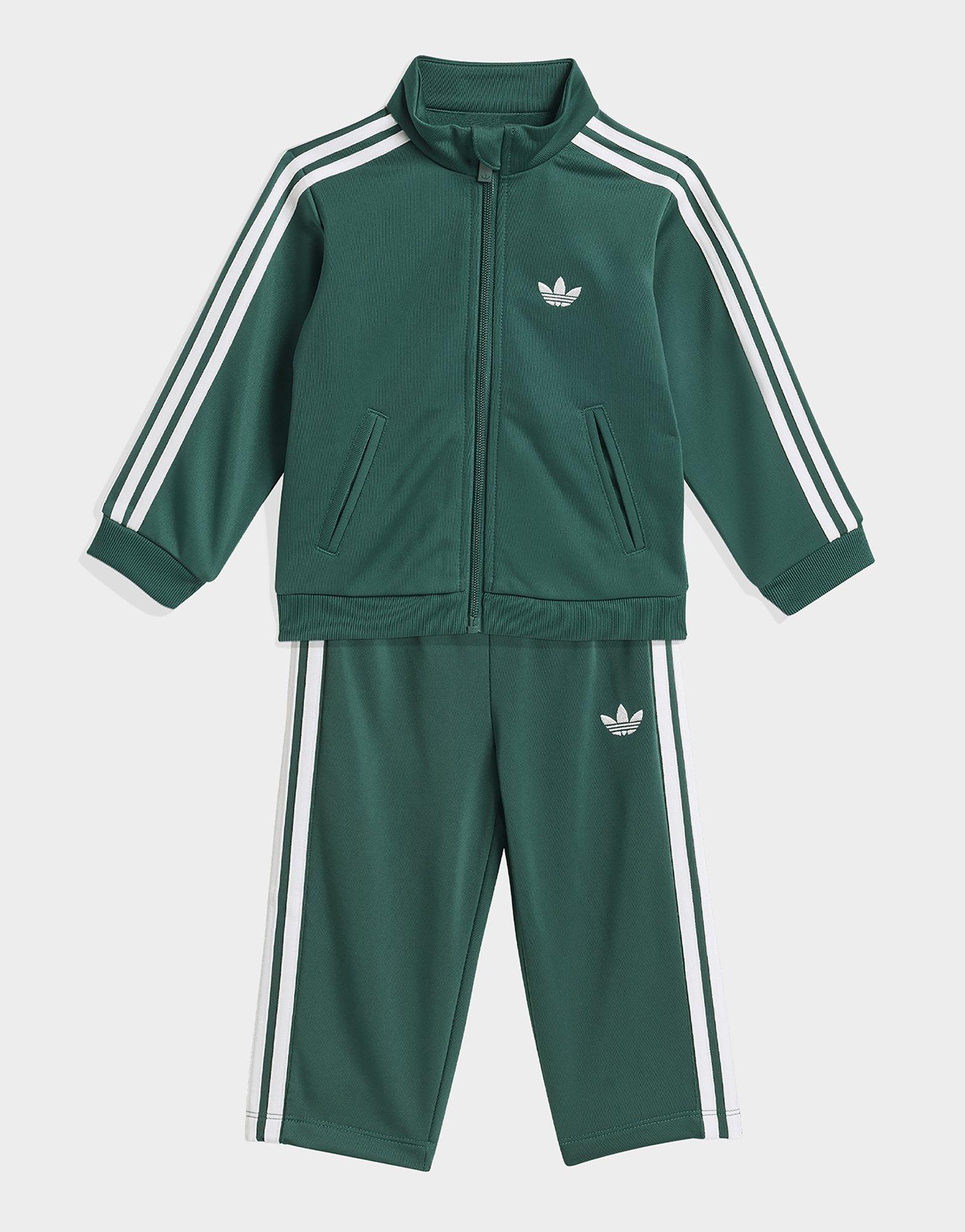 Lass dein Kind mit dem FIREBIRD TRAININGSANZUG, einem zeitlosen Teil, das von der legendären Adicolor Kollektion inspiriert ist, in die Welt von adidas Originals eintauchen. Dieser Trainingsanzug bringt klassische Designelemente mit moderner Handwerkskunst zusammen und zeigt auf coole und praktische Weise die kultige Tradition von adidas.Er ist aus weichem Trikotstoff gemacht und hat eine bequeme Passform, die sich den ganzen Tag den Bewegungen deines Kindes anpasst. Das Oberteil hat einen Reißverschluss, damit es leicht anzuziehen ist, und das Unterteil hat einen elastischen Bund und einen weitenregulierbaren Kordelzug, damit es auch bei wachsenden Kleinkindern sicher sitzt und anpassbar ist.Das gestickte Trefoil-Logo und die ikonische Firebird-Silhouette sorgen für den authentischen adidas Stil. Mit seinen leuchtenden Farben und dem coolen Design bringt dieser Trainingsanzug frischen Wind in die Garderobe deines Kindes. Mach ihn zur ersten Wahl für Komfort, Stil und alltägliche Abenteuer.