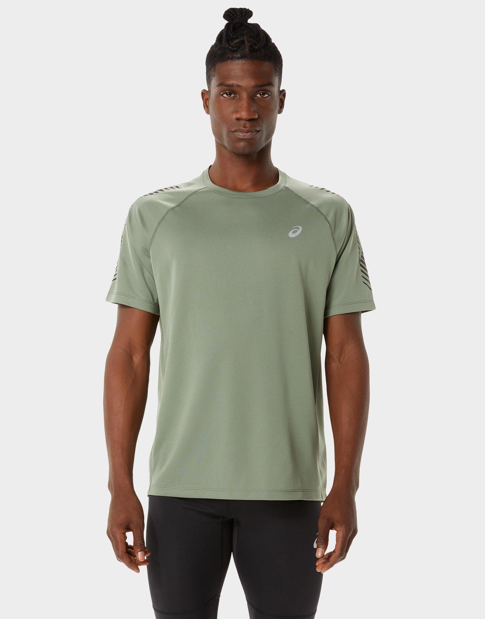Bleiben Sie aktiv mit diesem Männer-Icon-T-Shirt von ASICS. Dieses normal geschnittene T-Shirt in Lichen Green ist aus einem leichten und atmungsaktiven Poly-Strick-Material geschnitten und sorgt für ein angenehmes Tragegefühl beim Training. Es hat einen Rundhalsausschnitt mit kurzen Ärmeln für einen klassischen Look und reflektierende Details am Ärmel für bessere Sichtbarkeit. Abgerundet mit dem ASICS-Logo auf der Brust. Waschmaschinenfest.