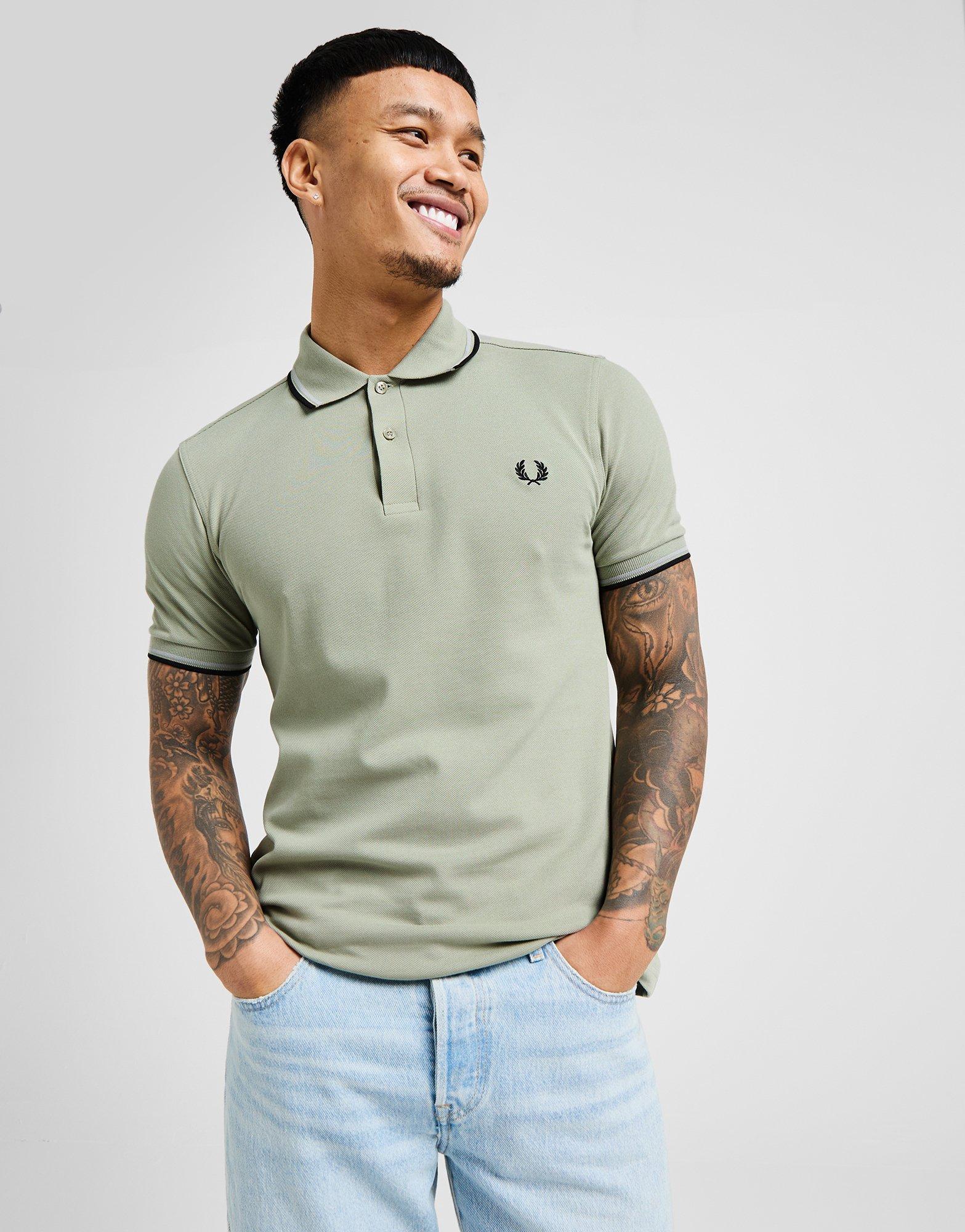 Zeit für Premium-Style von Fred Perry mit dem Twin Tipped Poloshirt für Herren. Dieses schmale Poloshirt in der Farbe Seagrass besteht aus ultraweichem Baumwoll-Piqué und bietet ein erstklassiges Tragegefühl. Es verfügt über eine Knopfleiste mit zwei Knöpfen, einen Spreizkragen für einen individuellen Look sowie kurze Ärmel mit gerippte Bündchen. Die Spitzendetails an Kragen und Manschetten erzeugen einen auffälligen Kontrast und abgerundet wird das Design durch das klassische Lorbeerkranz-Logo auf der Brust. Waschmaschinengeeignet. Unser Model ist 1,83 m groß, hat einen Brustumfang von 102 cm und trägt Größe M.