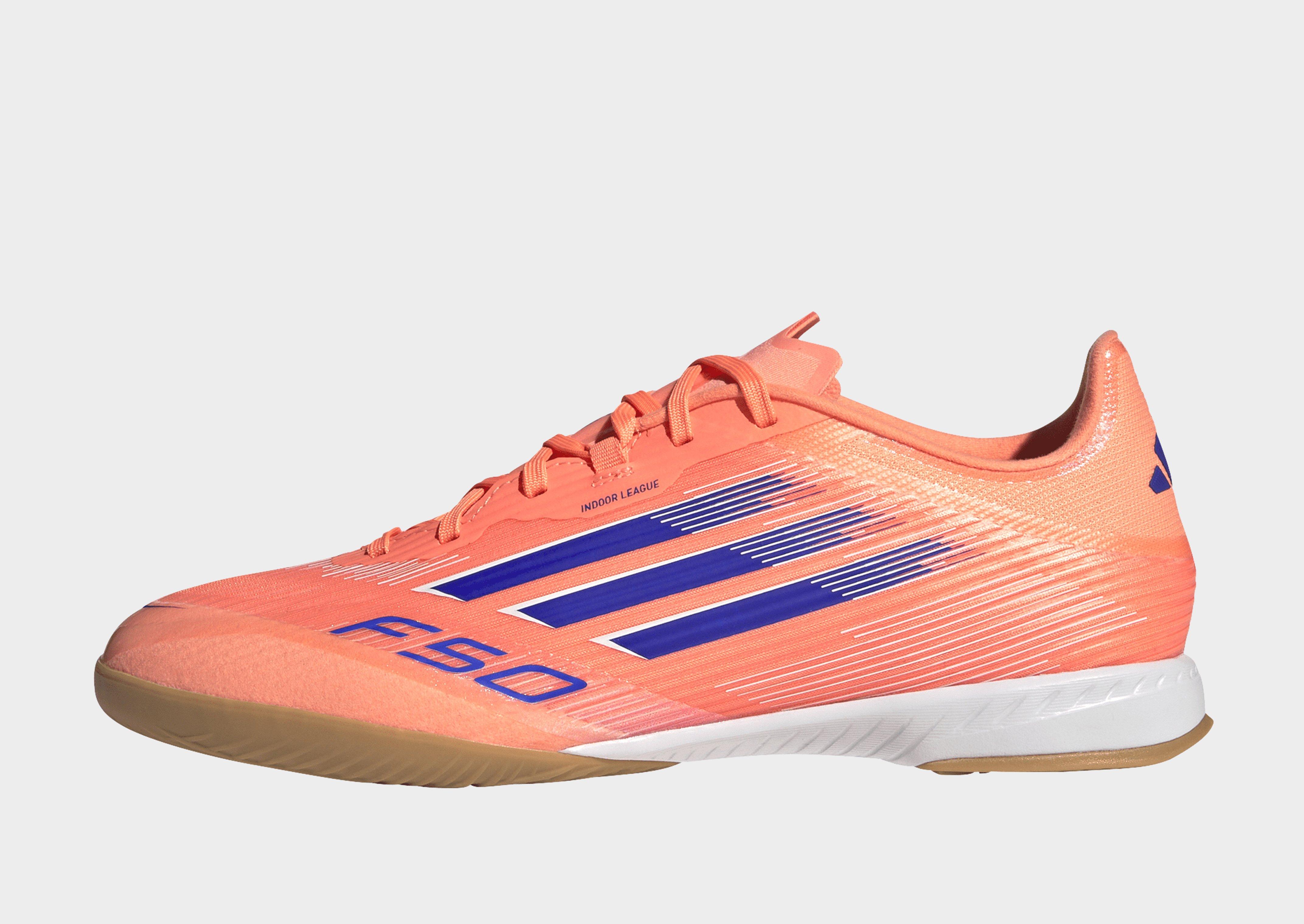 Zeig auf dem Platz, wer du bist. Spür den Kick mit dem adidas F50 Fußballschuh für ultimativen Speed. Das Fiberskin-Obermaterial dieser League Fußballschuhe bietet mit einer adaptiven Tunnel-Zunge einen sicheren Halt und ist mit einem Zehenschutz aus Wildleder für verbesserten Ballkontakt ausgestattet. Mit der abriebfesten Gummiaußensohle kannst du auf Hallenböden ein hohes Tempo vorlegen.