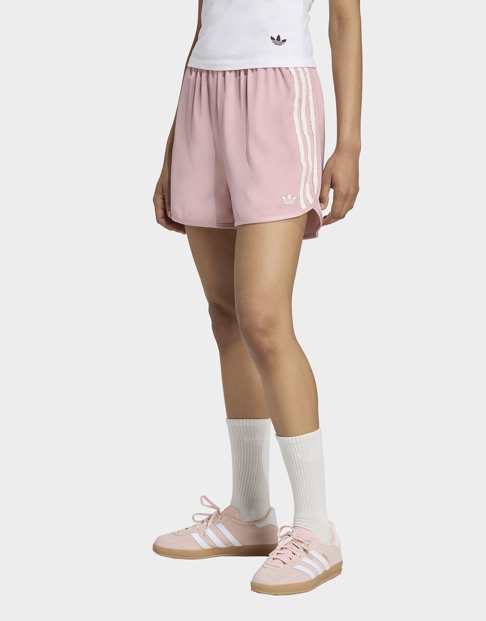 Die 3-Streifen sind auf der ganzen Welt ein Symbol für Mode. Und bei diesen Shorts werden sie luxuriöser dargestellt als je zuvor. Gerüschte Streifen heben sich auf seidenweichem Satin ab und verleihen dem klassischen Sport-Style einen schicken Twist. Trage sie in der Stadt, auf dem Festival oder wo auch immer du ein Style-Statement setzen willst.
