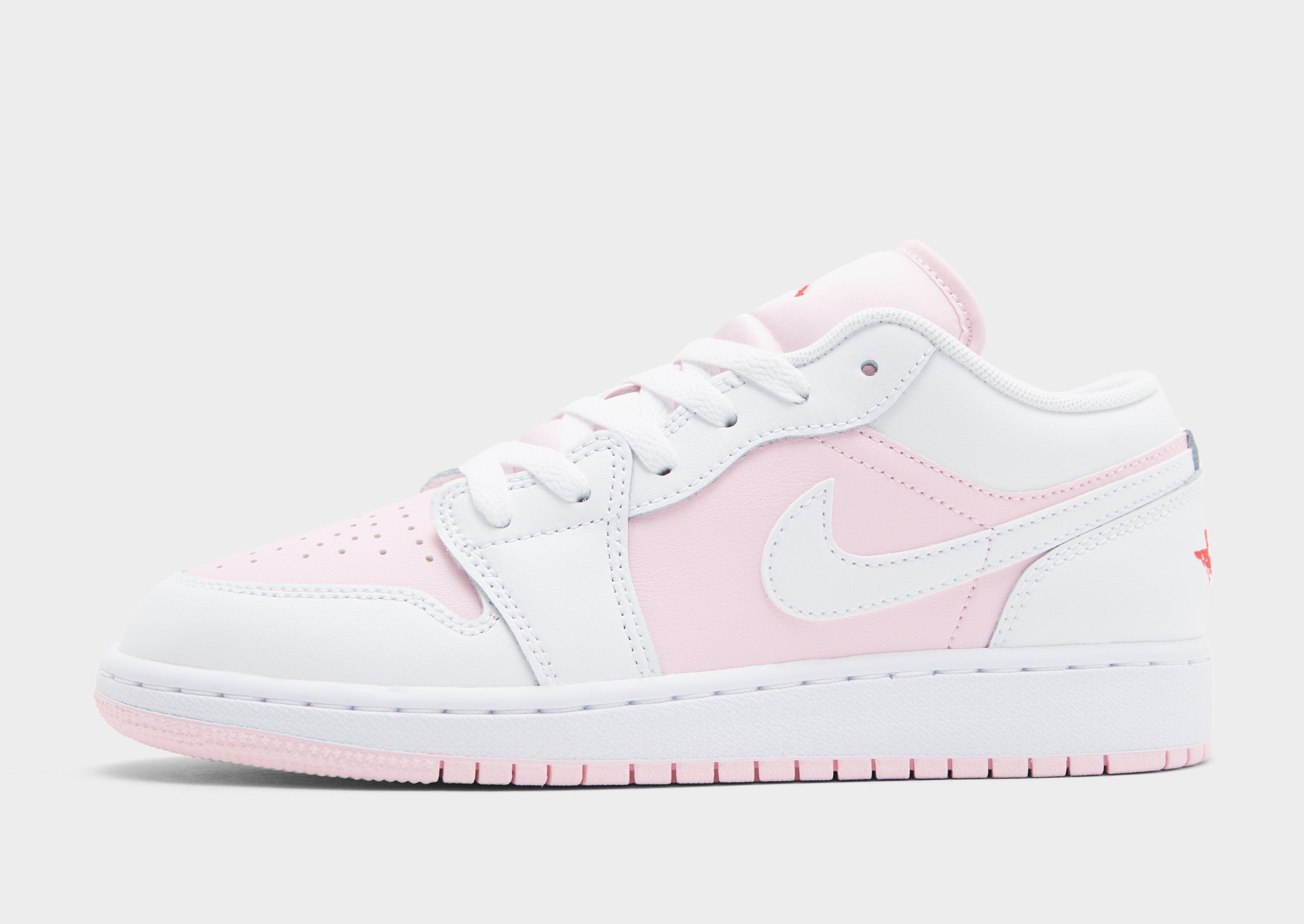 Bring die Basketball-Vibes in deine Rotation mit den Air 1 Low Kinder-Sneakern von Jordan. Das Obermaterial aus echtem und synthetischem Leder ist in den Farben Pink Foam und Weiß gehalten, während die Perforationen in der Zehenpartie für eine bessere Luftzirkulation sorgen. Der farblich abgestimmte Schnürverschluss und der gepolsterte Knöchelkragen sorgen für sicheren Halt und das eingekapselte Air-Element in der Ferse bietet federnde Dämpfung bei jedem Schritt. Eine Gummilaufsohle gewährleistet maximalen Grip und das Air Wings- sowie das Jumpman-Logo in Fire Red befinden sich an Ferse und Zunge.