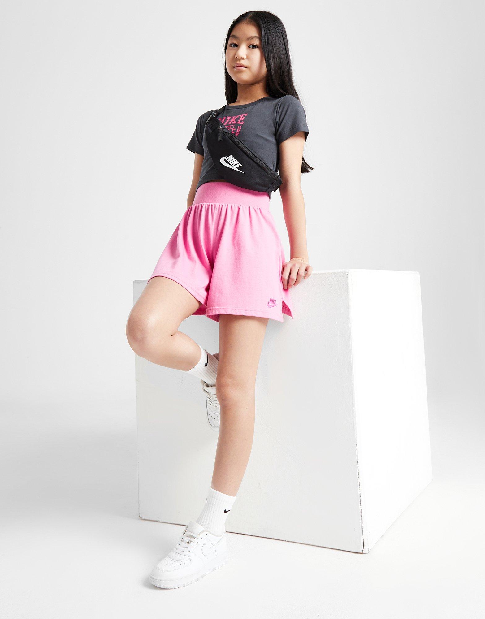 Sorge für einen entspannten Look mit diesen Nike Jersey Shorts für Mädchen. Diese Shorts in der Farbe Playful Pink bestehen aus einem weichen und atmungsaktiven Baumwollstoff und bieten dauerhaften Komfort. Sie verfügen über einen elastischen Bund für ein entspanntes Tragegefühl und sind mit dem Nike-Logo am Bein versehen. Waschmaschinengeeignet.