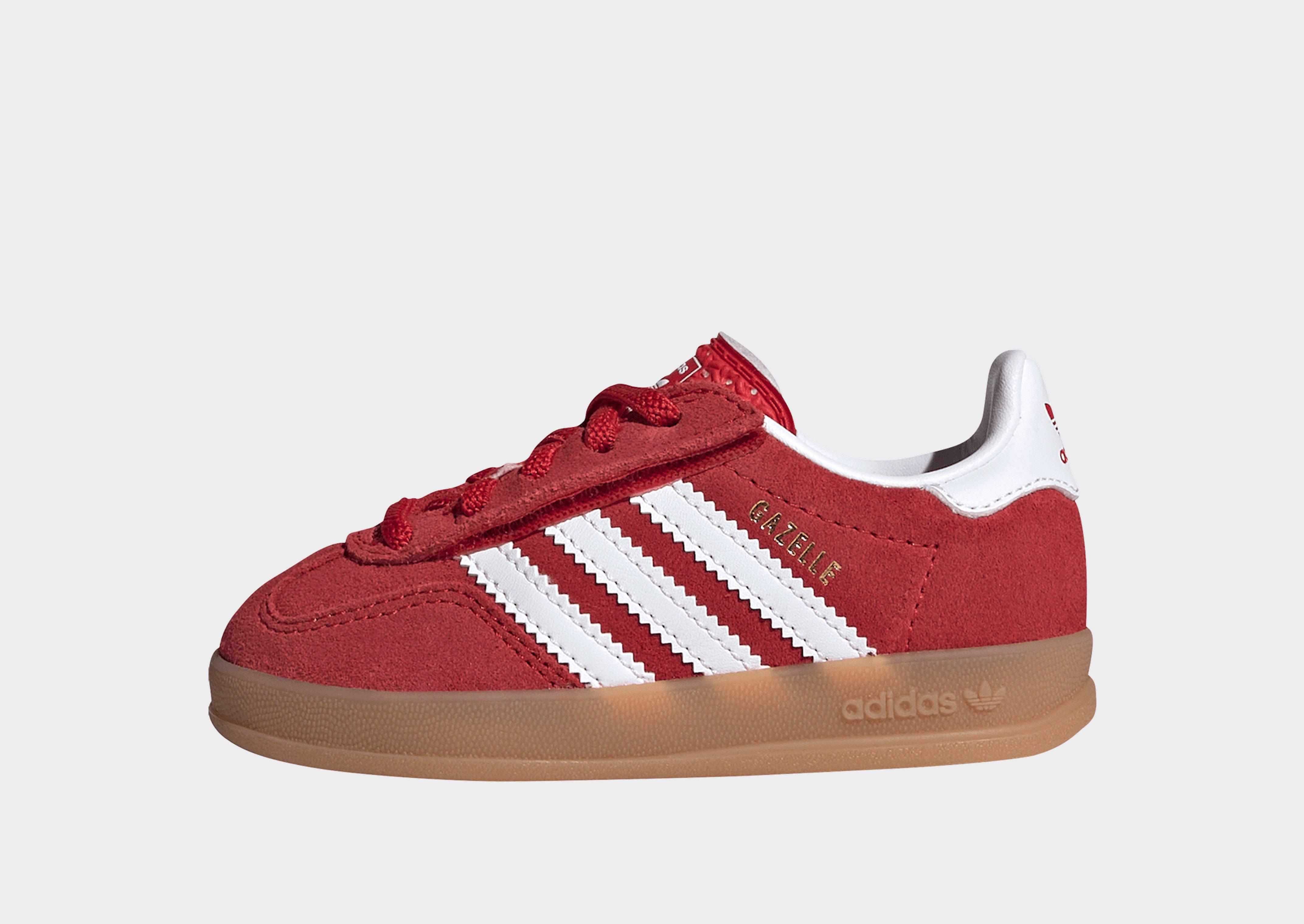 Erlebe spielerischen Komfort mit dem Gazelle Indoor Comfort Closure Schuh mit elastischen Schnürsenkeln. Inspiriert vom kultigen Gazelle Indoor, bringt er einen Hauch von Geschichte in die Schuhsammlung deines Kindes. Mit seinem Obermaterial aus Wildleder und der Gummiaußensohle ist dies der perfekte Schuh für alltägliche Abenteuer und unterschiedliche Oberflächen. Die Cold Cement Konstruktion bietet Stabilität für wachsende Füße. Innen sorgt die OrthoLite® Einlegesohle für zusätzlichen Komfort.Dank der elastischen Schnürsenkel mit Klettverschluss lassen diese Schuhe sich leicht an- und ausziehen. Die transparente Gummisohle gibt den Gazelle Sneakern einen ungewöhnlichen Twist, während das adidas Trefoil auf der Zunge, das Gazelle Branding und die ikonischen 3-Streifen das Design abrunden.Dies ist ein bequemer und vielseitiger Schuh für dein Kind, ob auf dem Spielplatz oder unterwegs.