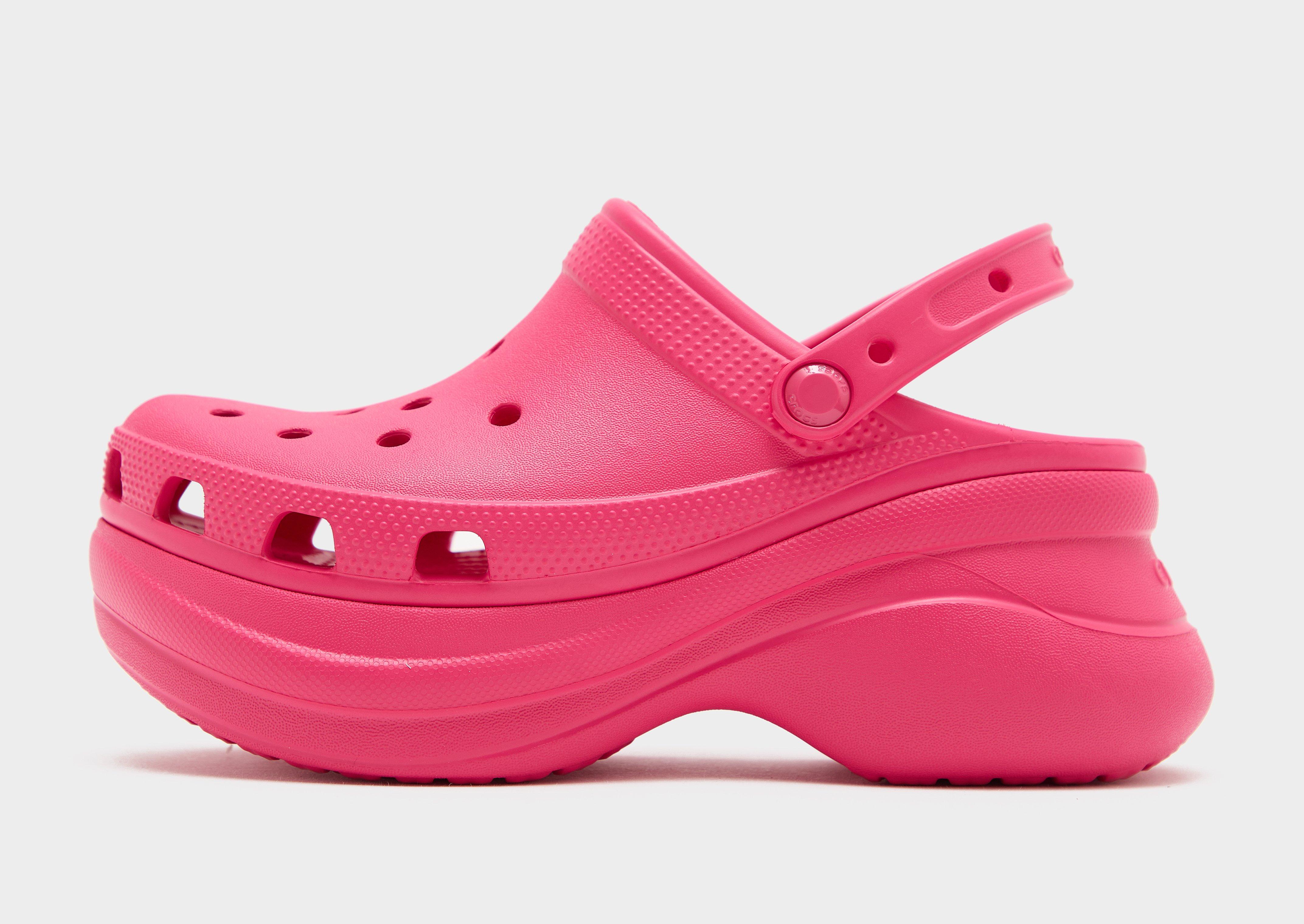 Die Klassiker werden mit den Bae Clogs für Damen von Crocs auf ein neues Level gehoben. Diese markanten, klobigen Clogs in der Farbgebung „Drachenfrucht“ sind aus Croslite-Schaum gefertigt und sorgen für ein leichtes, bequemes Tragegefühl. Sie verfügen über atmungsaktive Belüftungsöffnungen für Jibbitz-Schuhe und einen drehbaren Fersenriemen für eine individuelle Passform. Die gestapelte Zwischensohle sorgt für Dämpfung, die griffige Außensohle für Halt. Abgerundet wird das Design durch das klassische Crocs-Branding. Hinweis: Crocs fallen weit aus. Bei schmalen Füßen empfehlen wir eine Nummer kleiner. Die US-Größe ist auf der Sohle eingeprägt.