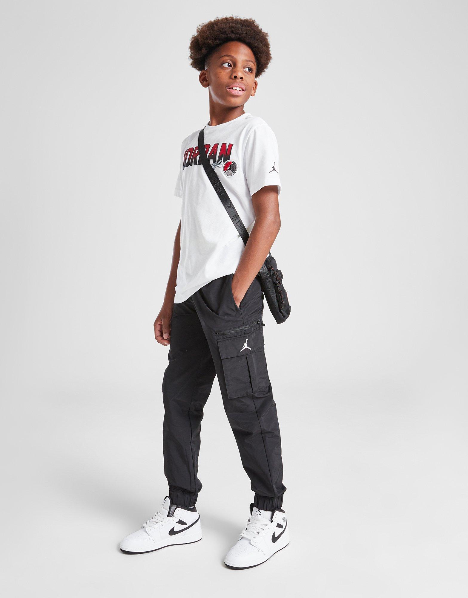 Verleihe deinem Look den Utility-Vibe mit der Jordan Jumpman Woven Cargohose für Kinder. Diese JD-exklusive Hose ist in Schwarz gehalten und besteht aus glattem, strapazierfähigem Polyester, um dir erstklsasigen Tragekomfort zu bieten. Sie verfügt über einen elastischen Bund mit Kordelzug für eine entspannte Passform, während gerippte Bündchen die Passform optimieren. Außerdem ist sie Seiten- und Cargotaschen versehen, die ausreichend Platz für Utensilien sicherstellen. Das legendäre Jumpman-Logo am Bein verleiht dem Design einen krönenden Abschluss. Waschmaschinengeeignet.