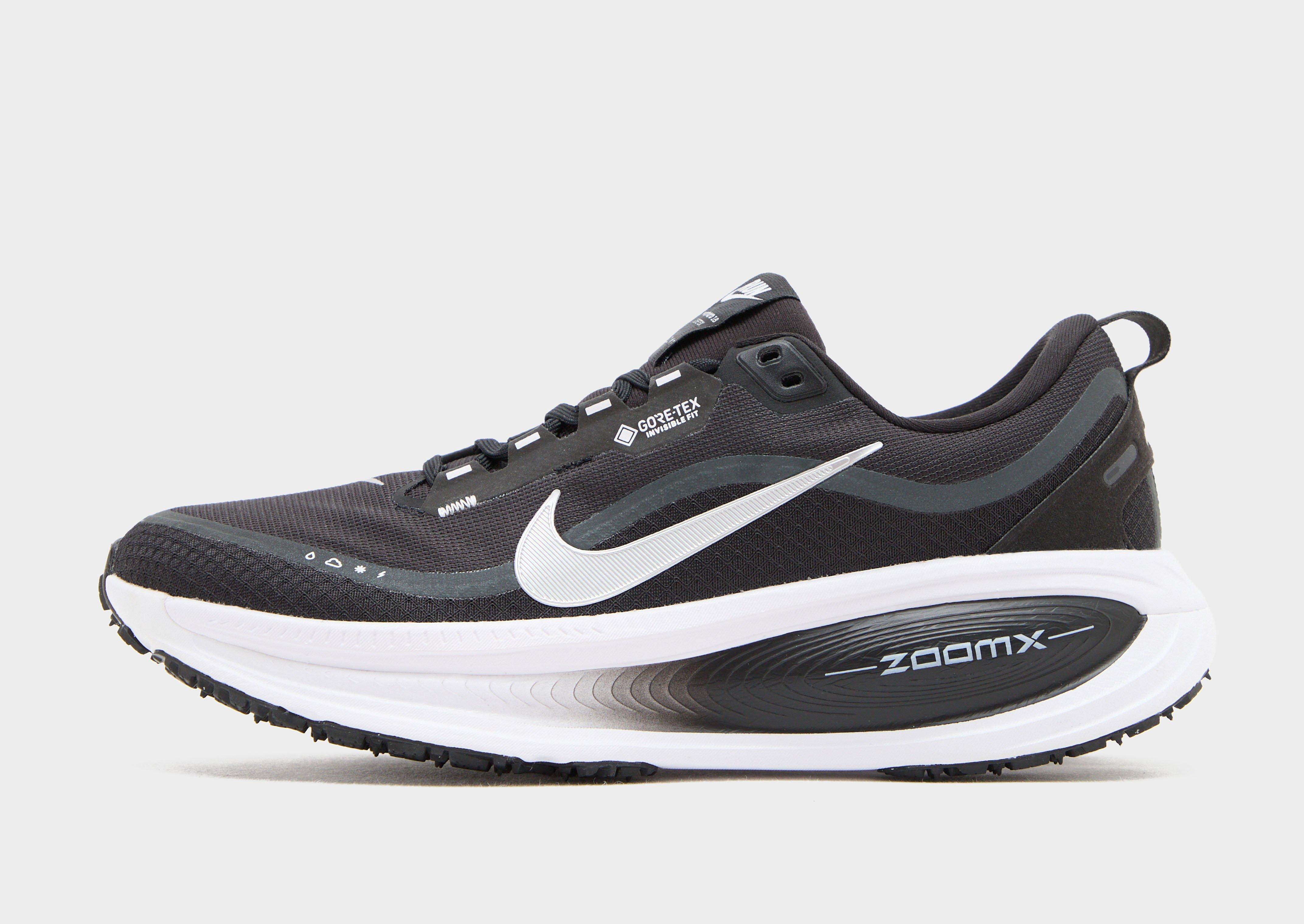 Mit den Nike Vomero 18 GORE-TEX Laufschuhen für Herren gehst du jede Extrameile. Diese Schuhe besitzen ein wasserdichtes GORE-TEX-Futter und ein Mesh-Obermaterial für atmungsaktiven, aber trockenen Tragekomfort. Unter den Füßen verfügen sie über eine Sprengung von 10 mm, während eine gestapelte Zwischensohle aus ZoomX- und ReactX-Schaumstoff erstklassige Dämpfung sicherstellt. Rutschige Bedingungen? Kein Problem. Die Storm-Tread-Außensohle ist bereit für jede Herausforderung. Abgerundet wird das Ganze durch reflektierende Elemente und das Swoosh-Logo.