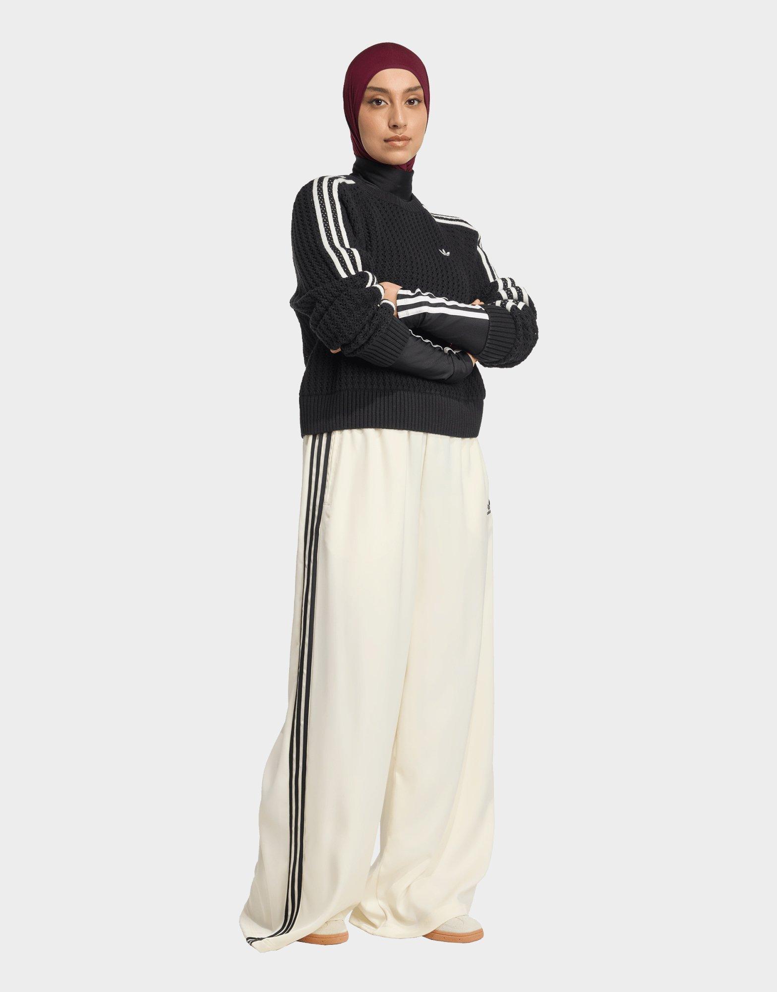 Diese Trainingshose mit weitem Bein ist eine Hommage an das Erbe von adidas und vereint Archiv-Style mit futuristischem Vibe. Die lockere, fließende Passform bietet einen lässigen Look, indem du dich mit Leichtigkeit bewegen kannst. Das Modell aus edlem Satin verströmt eine gewisse Eleganz, und eignet sich perfekt abends zum Ausgehen oder für einen lässigen Brunch. Die legendären 3-Streifen entlang der Beine sind so zeitlos wie der Look selbst.