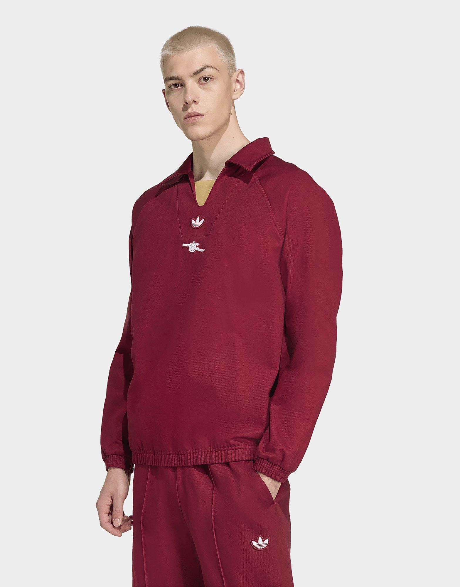 Eine Ikone der Fußballmode. Dieses adidas Arsenal Drill Top ist ein Must-have für treue Fans. Das Modell mit dem aufgestickten Badge und den Trefoil-Logos ist eine stilvolle Hommage an den schönsten Sport der Welt. Das Twill-Material fühlt sich weich an, während der kastige Schnitt für einen lässigen Stil sorgt. Trage dieses Oberteil über einem Shirt für einen lässigen Look oder kombiniere es mit einer Trainingshose und Sneaker für einen sportlichen Look.