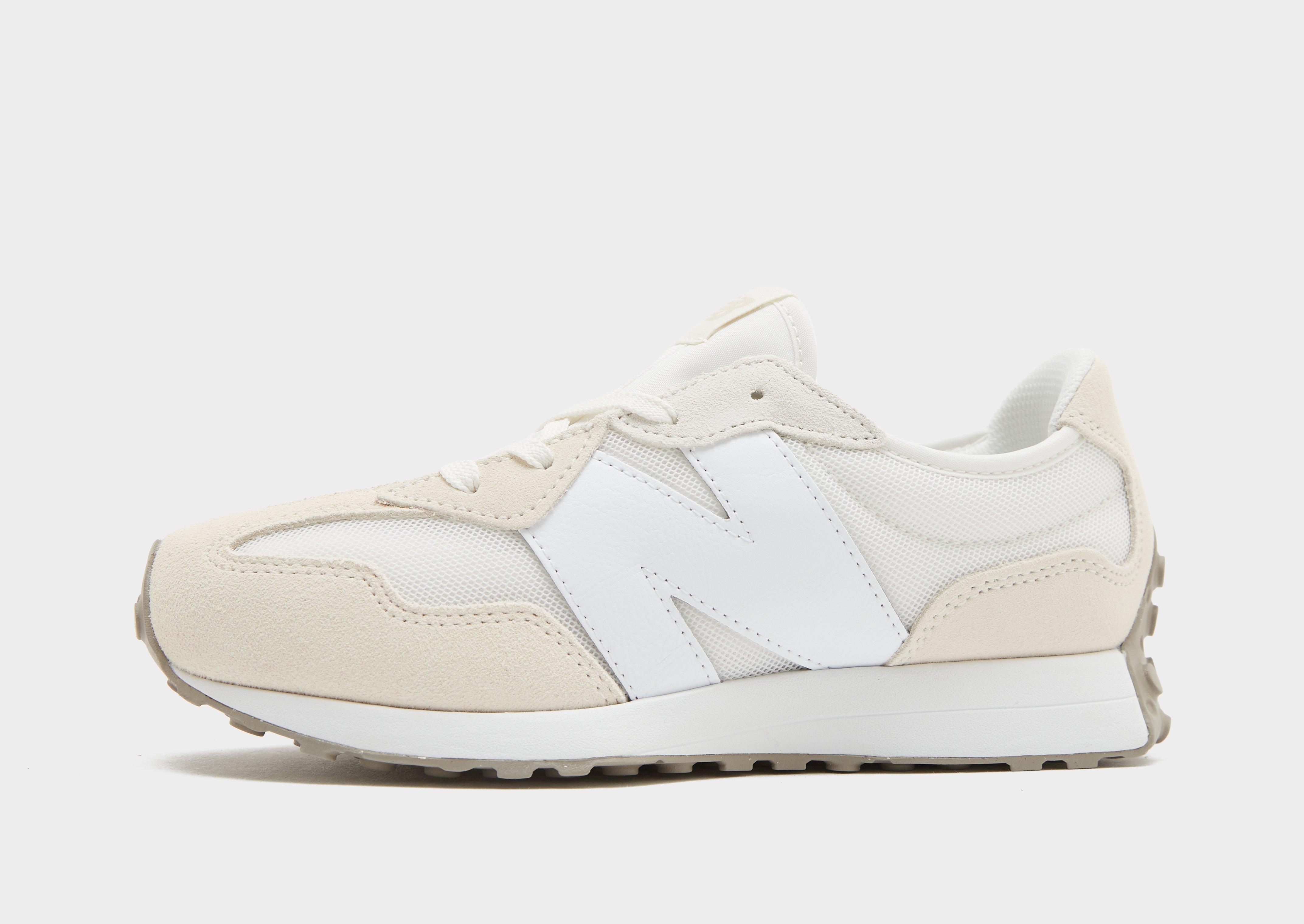 Retro-inspiriert, bringen diese Junior-Sneaker 327 von New Balance den Track-Style der 70er zurück. In den Farben Sand und Weiß haben diese Sneaker eine leichte Textilsohle und Wildlederüberzüge an Ferse, Ösen und Zehen. Die Schaumstoff-Zwischensohle ist für optimale Dämpfung gewölbt, während das genoppte Gummiprofil an der Ferse für trailähnliche Traktion sorgt. Abgerundet wird das Design durch ein übergroßes „N“-Logo an der Außenwand.